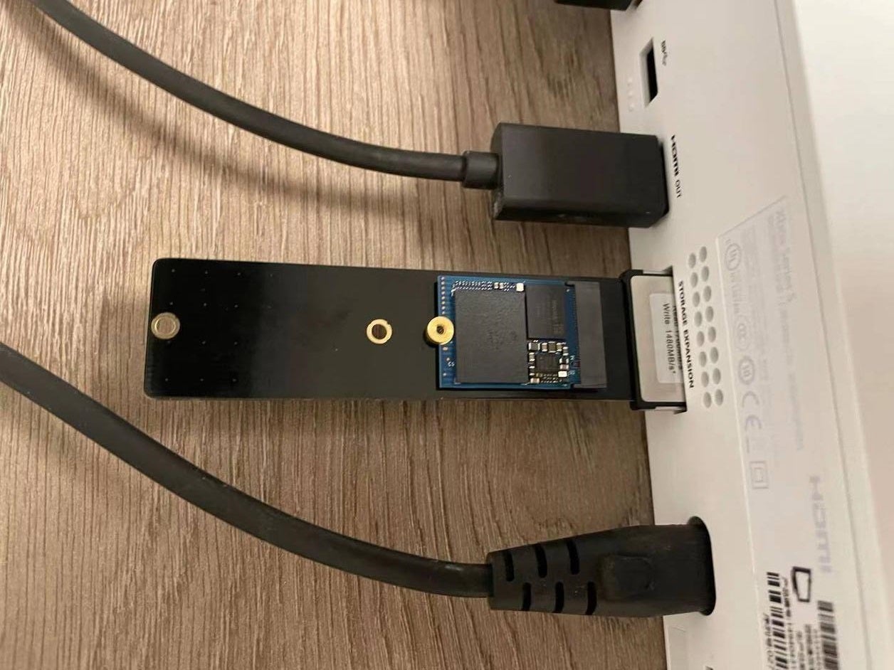 Użytkownik postawił na model 1TB Western Digital SN530 M.2 2230, ponieważ podobne moduły stanowią wbudowaną pamięć konsol Xbox Series X/S. Następnie podłączył sprzęt przez przejściówkę CFe do NVMe, a konsola bez problemów rozpoznała urządzenie - całe 867 GB.